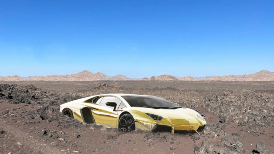 The project starts off with a sculpture- a half buried Gold Lamborghini. This sets the understanding of the architecture as a sculptural object rather than abstract planes and spaces, and locates the it in the complex geo-cultural present.